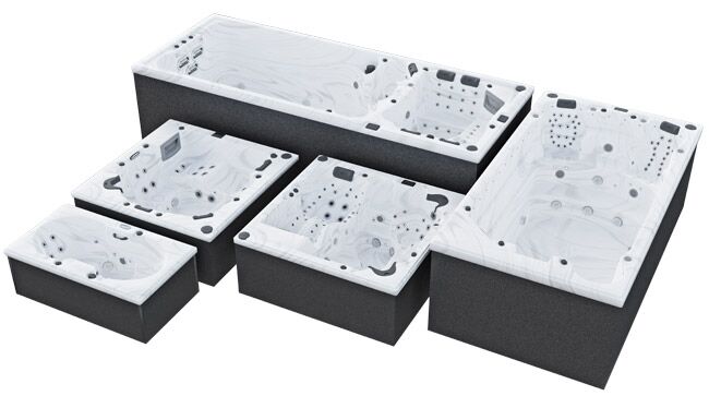 Die Custom Schwimmbecken sind maßgeschneidert und lassen in Hinsicht Form und Ausstattung keine Wünsche offen. Gestalten Sie Ihr Schwimmbad mit verschiedenen Tiefen, Massagedüsen, Liegeflächen, Sitzecken, Strömungskanal, Treppen