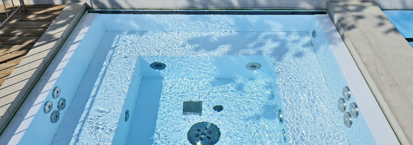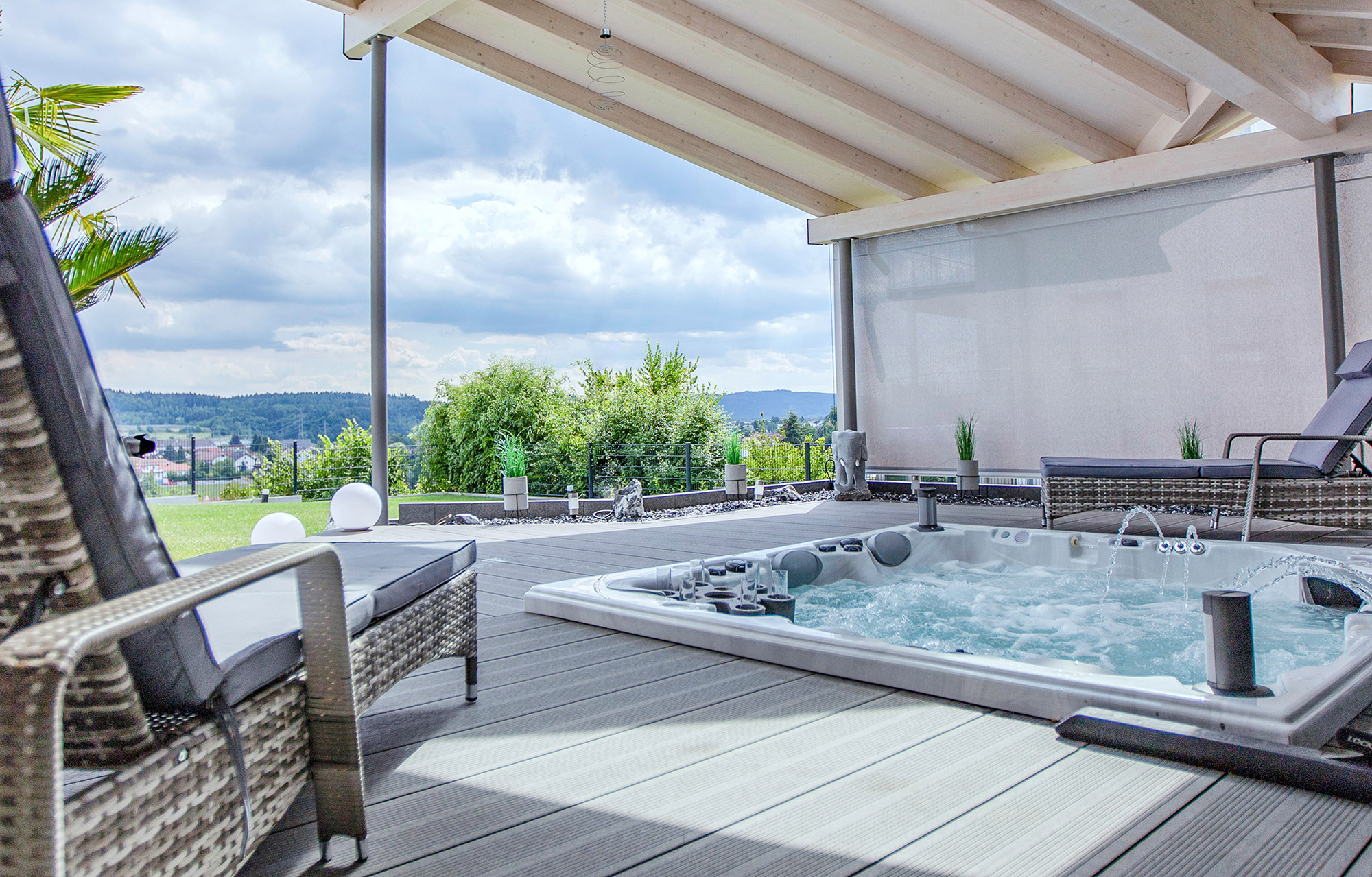 Eine Oase des Wohlfühlens kreieren Sie mit einem Whirlpool. Entspannen Sie zwischen tausenden Luftblasen und sanften Lichtfarben. Wählen Sie zwischen verschiedenen Whirlpool-Größen und der Anzahl von Massagedüsen.